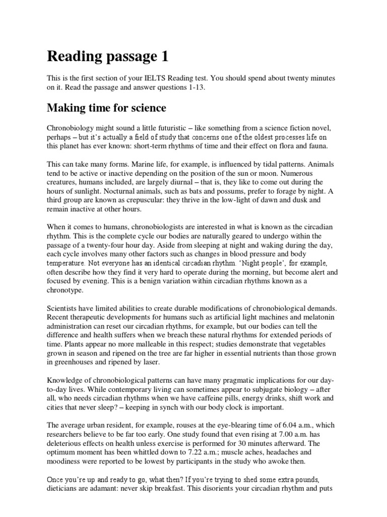 Ielts Reading Passage 1 Pdf Circadian Rhythm Sleep